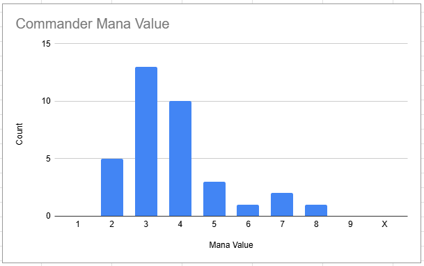 I appreciate that there are no one-mana-value commanders, and just a handful at two mana. Having the bulk at three, four, and five keeps things slow and steady, and as someone who loves high cost commanders, I love that there are ones at six, seven, and even eight mana.