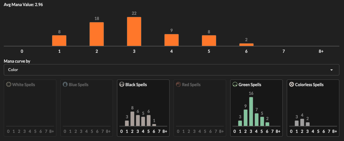 You can see we have a nice curve of spells, focused primarily on mana value two and three.