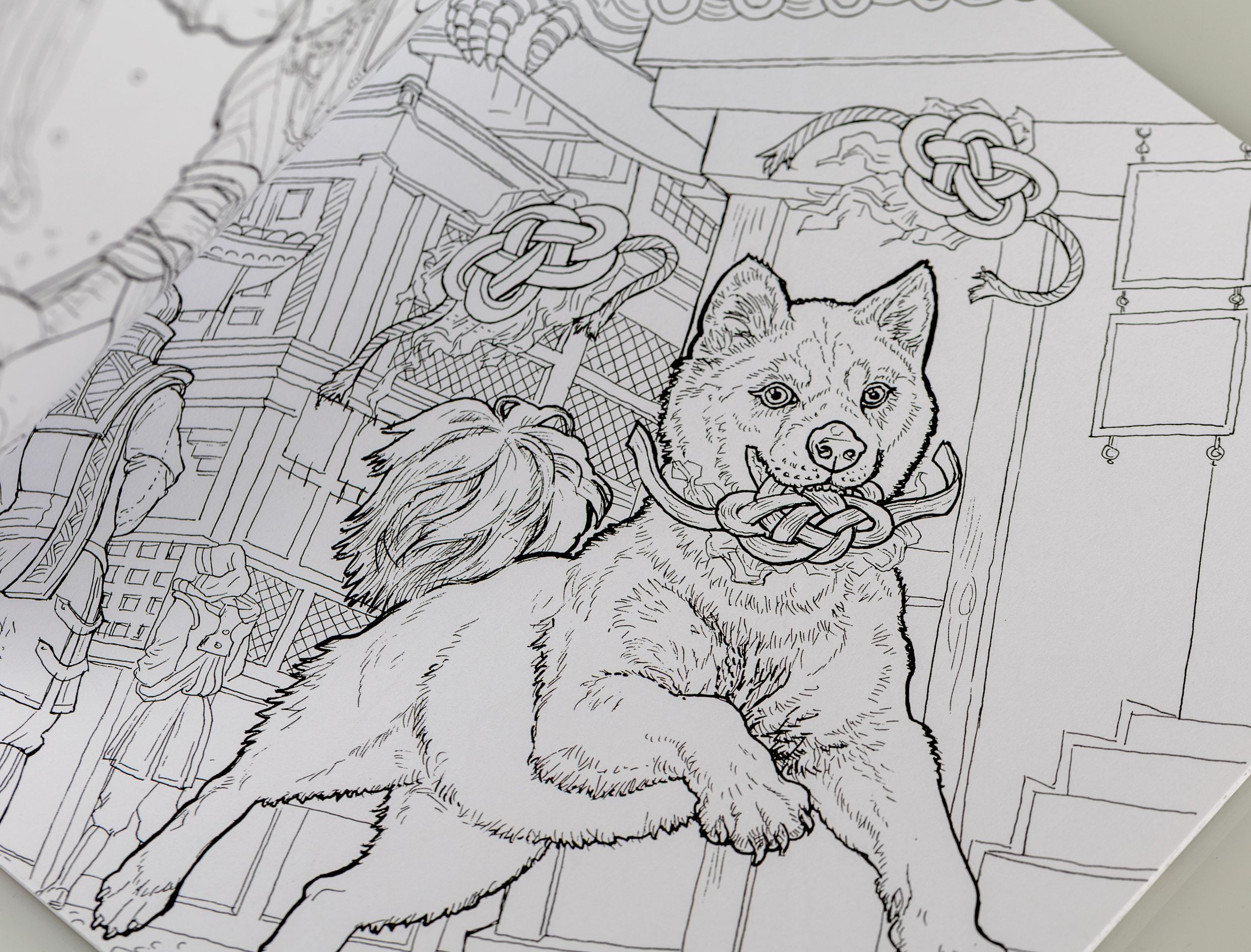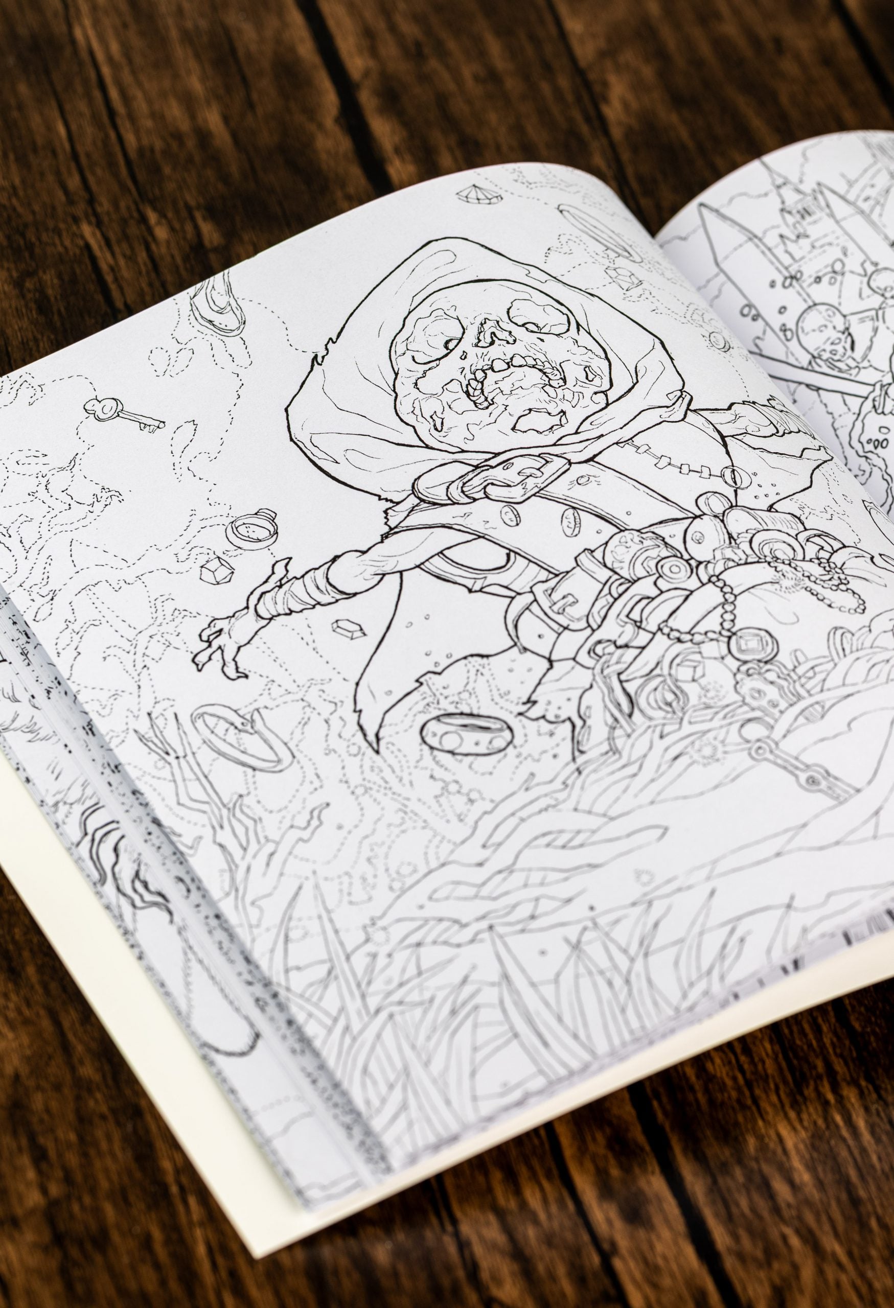 Each illustration in the book is pulled straight from the cards, rendered in line art by Yvonne Gilbert and Tomislav Tomic, and ready to be colored in as you see fit. Each piece of art sees its original artist credited in a back-page index.